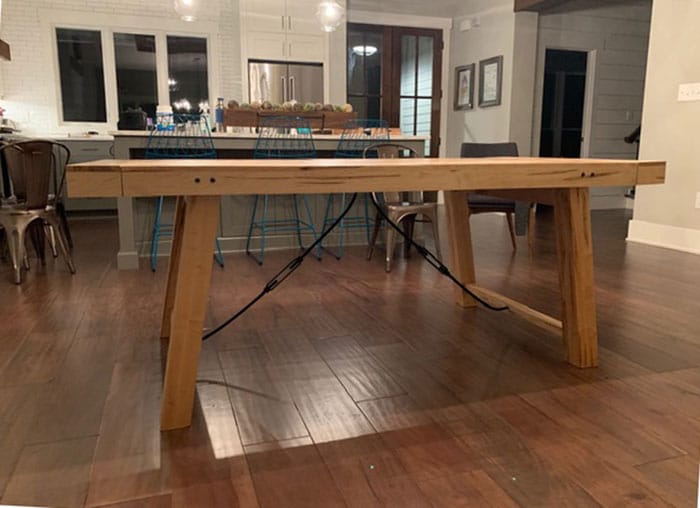 Just wanted to let you’ll know, I purchased the DowelMax and used it for the first time on the following table. I did quit a bit of research on what would be the best joint for all the curved connections and I decided to go with the DowelMax. I was Very nice pleased with the Jig and would recommend it to anybody that want a quick dead on joint. Below are some pictures of the Mesquite Dining Table and a video on YouTube of the table being made.