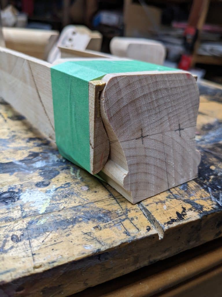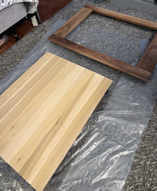 Mitered corners with exposed black walnut dowels