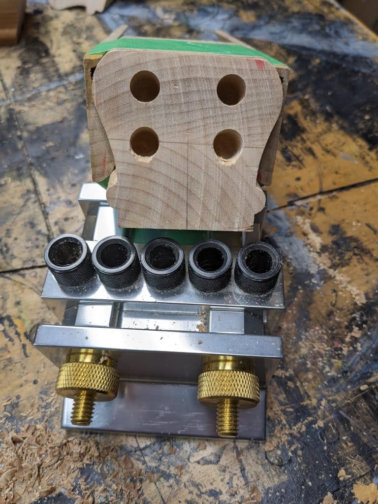 With that said, I would like to mention three minor issues I have run into. First when using the 1/4″ system and doing a face dowel, the clamps won’t clear the base, I had to mill a small piece of wood so the clamp face won’t run into the base. Not sure I described it correctly but hopefully you will figure it out.