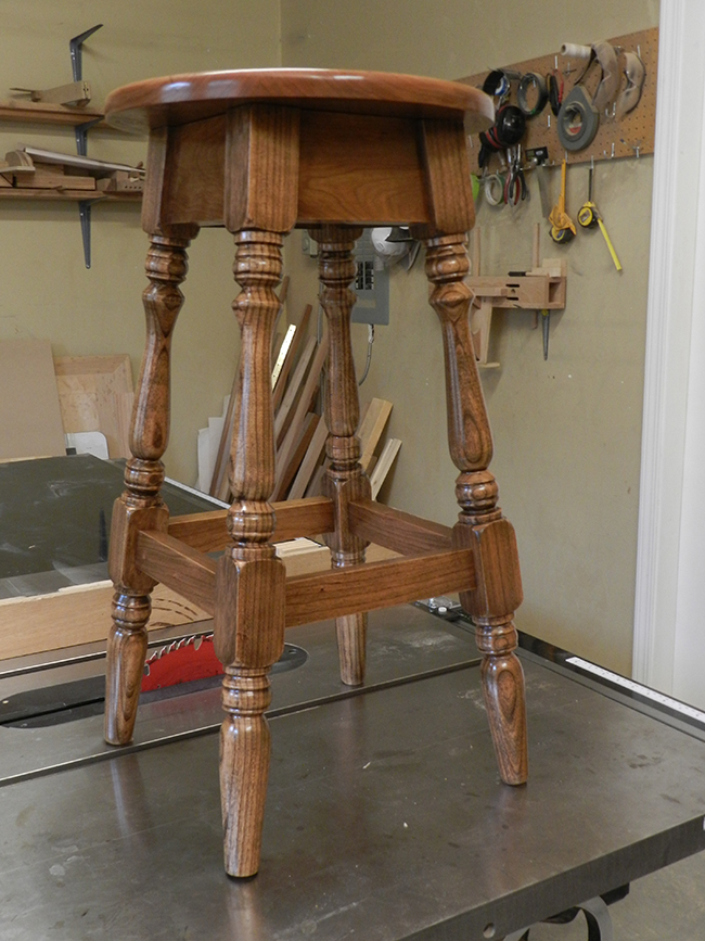 This project instruction article describes how to design and build a counter stool with 100% dowel construction. The height of the stool is appropriate for our granite kitchen counter top, and will be approximately 26-1/2 inches.