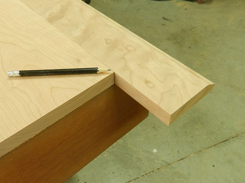 I joined 2 pieces of cherry to make up the 13 1/8″ width and used 6 dowels for the long join, i.e. 4 approx. 3″ in from each end and 2 at the centre.