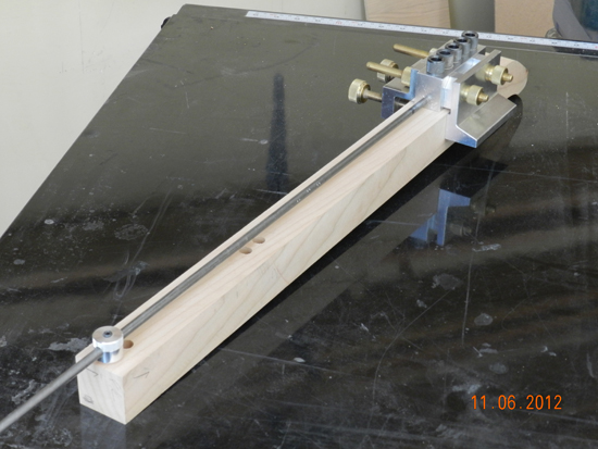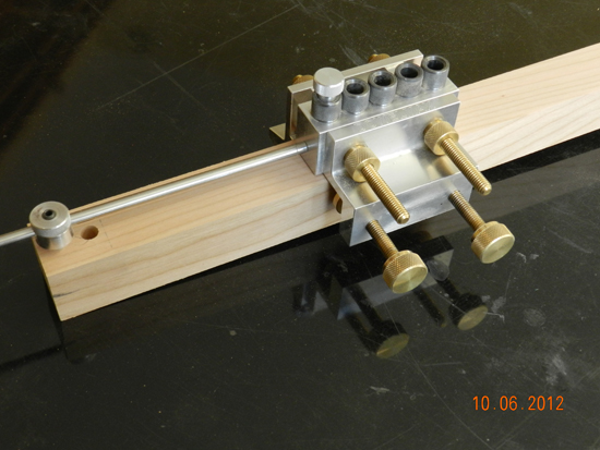 It is advisable to ensure that the 2 lengths of the rails are identical and to that end I use the Universal Tape Gauge (UTG) as shown. Since the UTG is physically in contact with edges of the work piece and a reading is taken from a cross hair on the lens, a more accurate reading can be obtained.