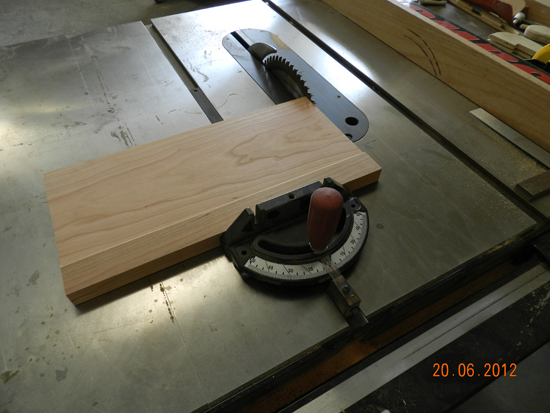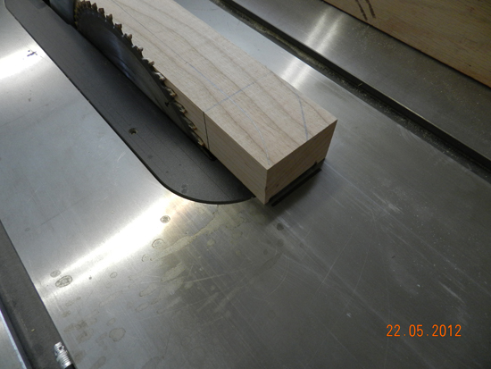 I prefer to use the table saw, but again, care has to be taken to ensure absolute right angle cuts before proceeding. Refer to photo below.