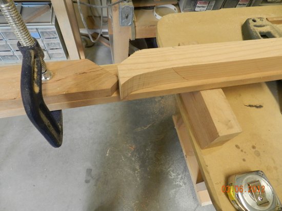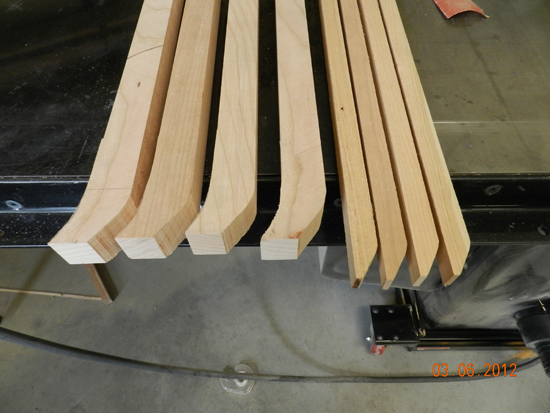 The design of this small end table incorporates 4 inner verticals located on the inner face of all 4 legs. Each measures 7/8 x 7/8 x 22 ½” and the lower profile is shaped to match the curved profile of each leg. All 8 roughed out sections are shown in photo #3