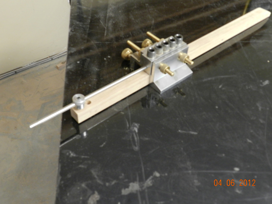 Use the longer distance gauge to accurately place the 2 bores for the lower rail.