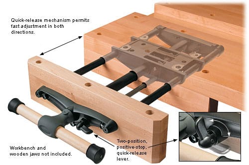 For the vise I used the Lee Valley Veritas Quick Release Front Vise. This vise comes with a template for straightforward installation and functions extremely well.