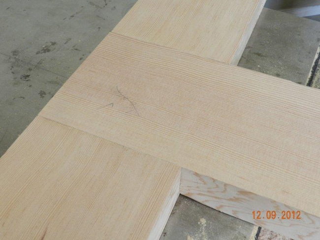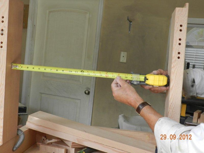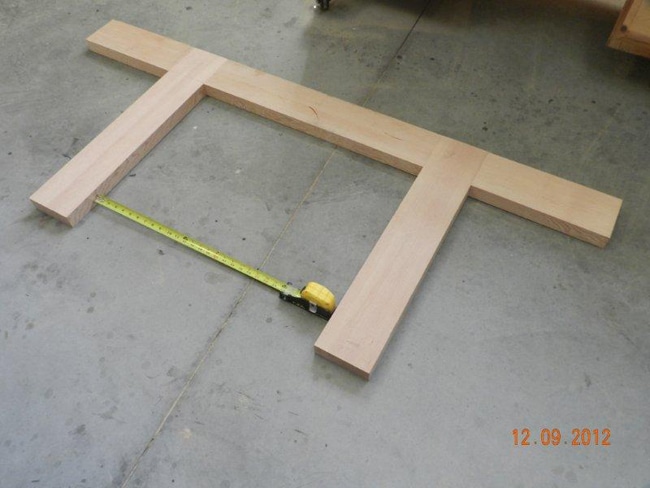 The reading gave an exact size required for the length of the forward and rear lower longitudinal rails. These ends were again cut using the sled and table saw. The design of these components measured 1-3/4 x 5 1/2 x 30 inches.