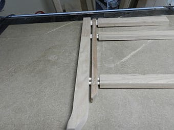 This technique was used for the solid wood top assembly in our new entryway table and past bookcase project articles. Click on any image to play the video.