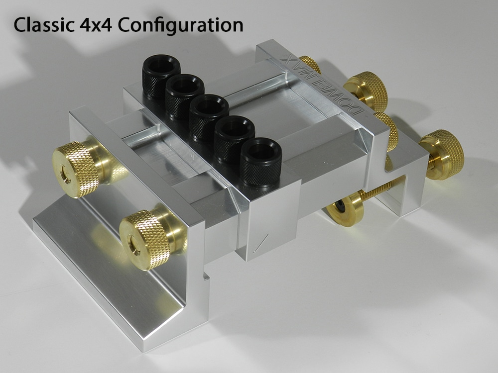 I have had the 3/8″ Dowelmax classic for two years now, I have since added the 1/4 and 1./2″ upgrades. Needless to say I love this dowel jig. It beats every other dowel jig hands down for quality, accuracy and ease to use. I highly recommend this jig. It pricy, but I believe that buy the best and you only cry once and you will be happy forever and probably save money trying to chase less expensive systems that dont give nearly as good results.
