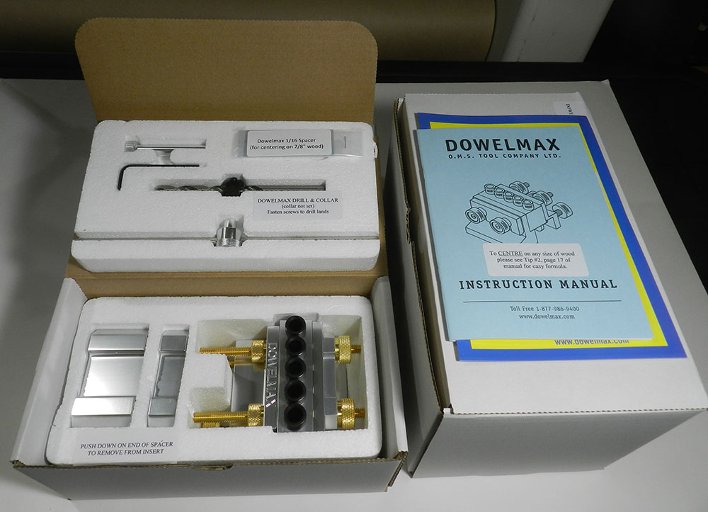 I’ve owned Dowelmax for a few years now, bought directly from Dowelmax, not a third party. First will say customer service is great – I called before I ordered, and have called a few times since for recommendations on use and where to order dowels. I have the 3/8 classic, 1/4 setup, 45 degree setup…whole 9 yards. Figured get it all at once and save some shipping.