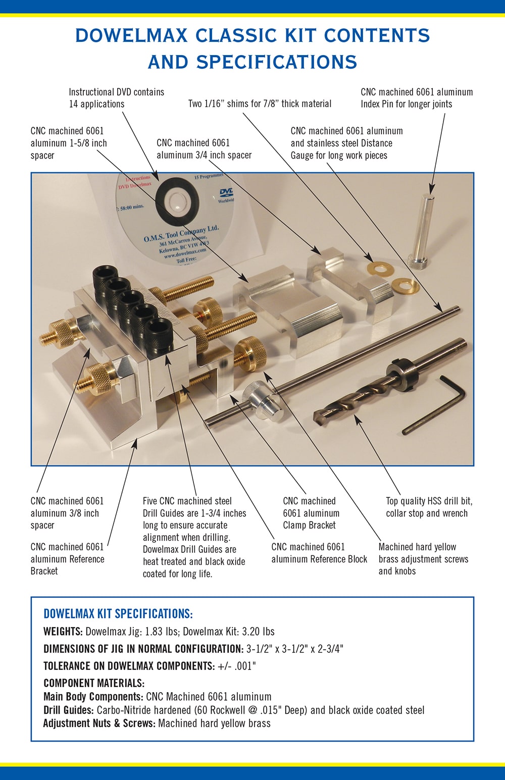 Think I have had a Dowelmax for at least 15 years maybe more. Bought it at a wood show in Calgary. This tool is exceptional. If you are used to inaccurate doweling jigs then this one will change your mind in a hurry. Simple to use once to get the brain memory imprinted, it becomes second nature. Have made a few different spacers over the year to accommodate the different offsets needed for some jobs. If you only own one dwelling jig then this is the one to own. This one of those tools where you cry once at the start because of the price you pay, however when you buy an inferior tool you will cry every time you use it.